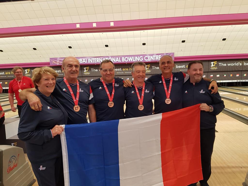 Championnat du Monde de bowling Séniors + à DUBAI . 06.12.2021 . La France rapporte 2 médailles de bronze et 1 médaille d'Or de ce championnat du Monde qui s'est déroulé dans les Emirats du 6-26/11/2021. Médaille d'Or pour l'équipe de France Dames . La délégation française était composée de Nathalie Di Martino, Pépita Jacques.