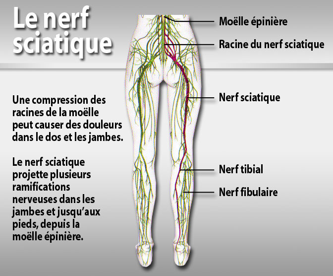Inflammation du nerf sciatique, trajet, douleur à la jambe et traitement