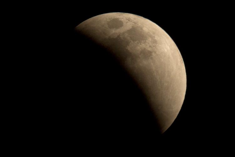 Une éclipse lunaire partielle se produit lorsque seule une partie de la Lune est couverte par l'ombre de la Terre. Cela se produit lorsque le Soleil, la Terre et la Lune ne sont pas parfaitement alignés.. Lors de chaque éclipse lunaire, l'ombre de la Terre sur la Lune est toujours circulaire et ne change pas de forme avec la.