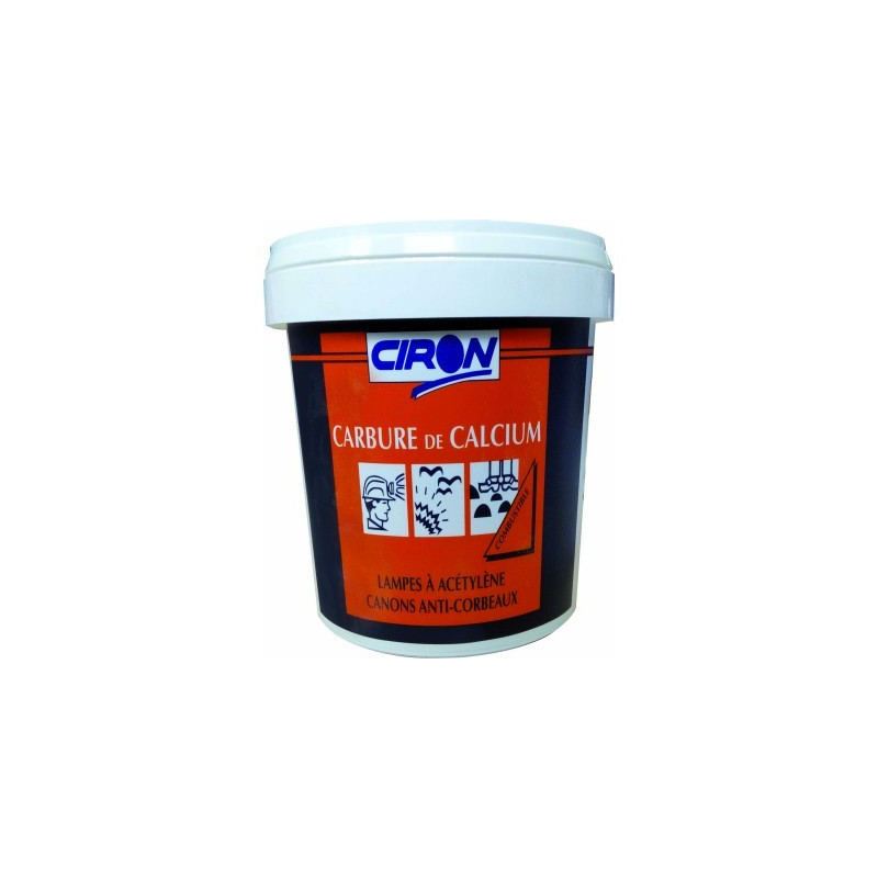 TTC. le Carbure de Calcium de formule CaC 2 est employé. pour éliminer les rongeurs dans les galeries des jardins. pour alimenter des lampes dites à acétylène. Les résidus de chaux après éclairage ou explosion constituent un excellent répulsif contre les araignées. pour remplir le chargeur du canon anti-corbeaux. 1kg. Quantité.