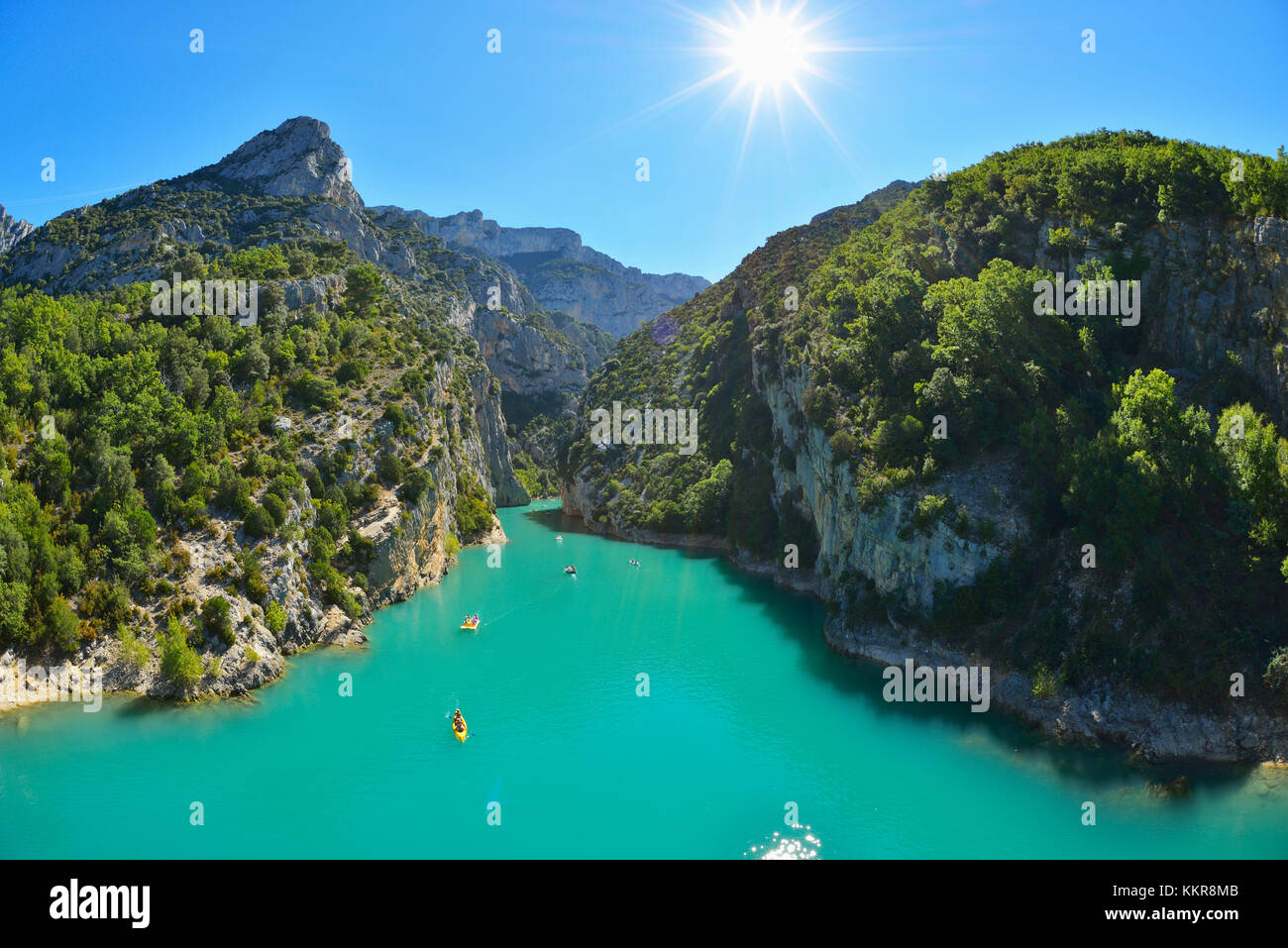 Canyon du verdon in summer with sun, Lake Sainte Croix, Parc Naturel Regional du Verdon