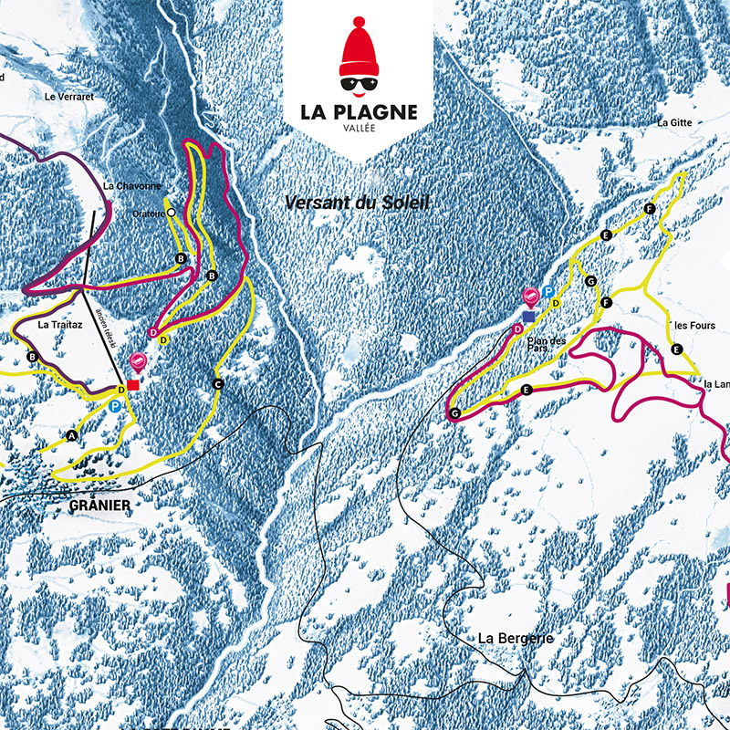 Profitez pleinement de vos vacances à Belle Plagne et la Plagne en vous appuyant sur les plans des pistes. Accédez aux pentes de votre niveau (vert, bleu, rouge, noir), repérez les remontées mécaniques et télésièges, et rejoignez les chalets et stations pour vous reposer.