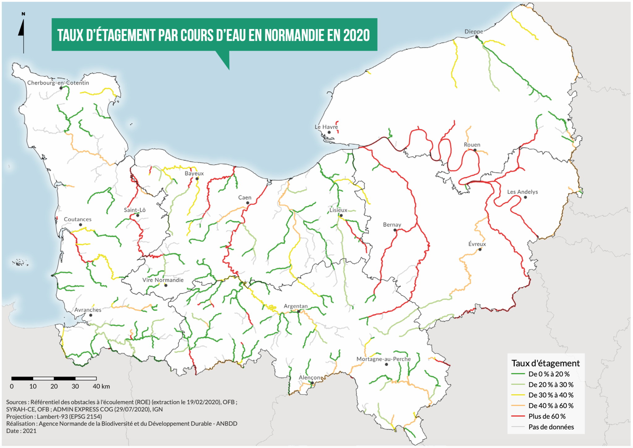 Fragmentation des cours d'eau de Normandie L’Agence normande de la biodiversité et du